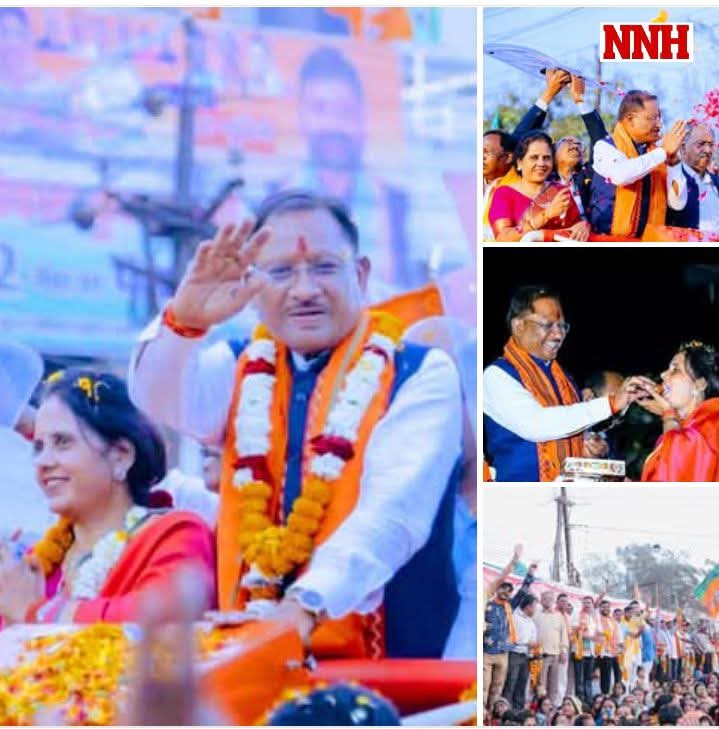 नगर निगम चुनाव में मुख्यमंत्री विष्णुदेव का विशाल रोड शो मीनल चौबे के पक्ष में प्रचार