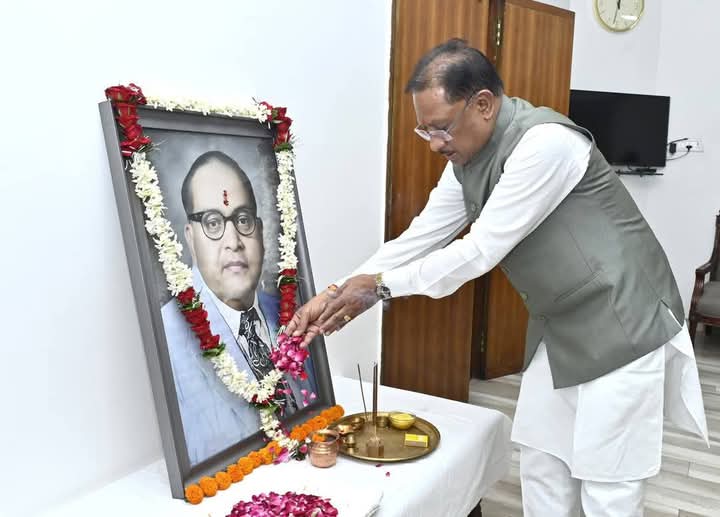 विष्णुदेव साय ने सीएम हाउस में डॉ.अंबेडकर के तैलचित्र पर पुष्प अर्पित कर दी श्रद्धांजलि