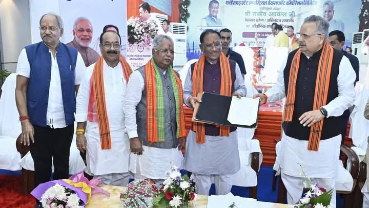 NNH रायपुर/ छत्तीसगढ़ स्टेट इंडस्ट्रियल डेवलपमेंट कॉरपोरेशन (सीएसआईडीसी) के नवनियुक्त अध्यक्ष राजीव अग्रवाल आज राजधानी रायपुर स्थित उद्योग भवन में पदभार ग्रहण किया। छत्तीसगढ़ साहित्य अकादमी के नवनियुक्त अध्यक्ष शशांक शर्मा और छत्तीसगढ़ पर्यटन मंडल के नवनियुक्त अध्यक्ष नीलू शर्मा ने बुधवार शाम 4 बजे राजधानी के पं. दीनदयाल उपाध्याय ऑडिटोरियम में पदभार ग्रहण किया। खास बात यह है कि दोनों नवनियुक्त अध्यक्ष ने एक ही मंच और एक ही समय में पदभार ग्रहण किया।
