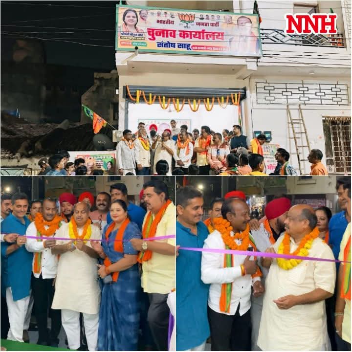 NNH रायपुर/ मदर टेरेसा वार्ड के भाजपा पार्षद प्रत्याशी संतोष साहू के मुख्य चुनाव कार्यालय का उदघाटन उत्तर के विधायक – पुरन्दर मिश्रा ज़ी के द्वारा इंदिरा चौक श्याम नगर मे किया गया