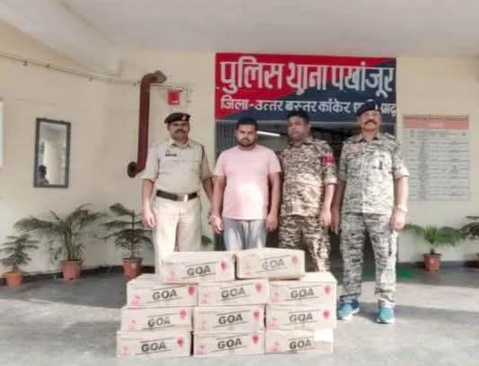 NNH रायपुर/ 2 अक्टूबर गांधी जयंती शुष्क (ड्राई डे) दिवस के दिन छत्तीसगढ़ के पखांजूर में पुलिस ने भाजपा नेता मिंटू सरकार उर्फ सोनू के घर छापा मारकर 11 पेटी मध्यप्रदेश निर्मित अंग्रेजी शराब बरामद की है। पुलिस को काफी समय से सूचना मिल रही थी कि पखांजूर इलाके में मध्यप्रदेश की शराब की तस्करी की जा रही है।