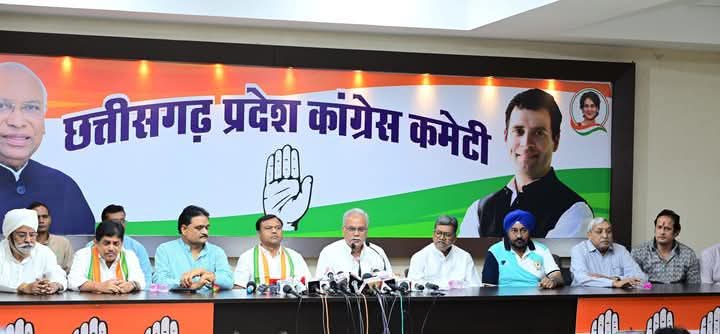 NNH रायपुर/ छत्तीसगढ़ के पूर्व मुख्यमंत्री भूपेश बघेल ने राजीव भवन में प्रदेश कांग्रेस अध्यक्ष दीपक बैज, नेता प्रतिपक्ष डॉ. चरणदास महंत, पूर्व मंत्री सत्यनारायण शर्मा, डॉ. शिवकुमार डहरिया की उपस्थिति में पत्रकार वार्ता को संबोधित किया।