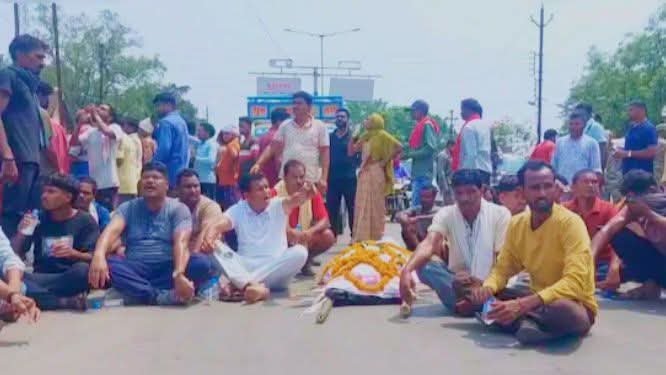 कांग्रेसियों ने सड़क पर शव रखकर किया विरोध प्रदर्शन, हत्या का मामला दर्ज