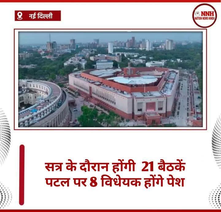 NNH नई दिल्ली/ संसद का मानसून सत्र आज से यानी सोमवार 21 जुलाई से शुरू होकर 21 अगस्त तक चलेगा। सत्र के दौरान 21 बैठकें होगी और 8 विधेयक पटल पर पेश किए जाएंगे।