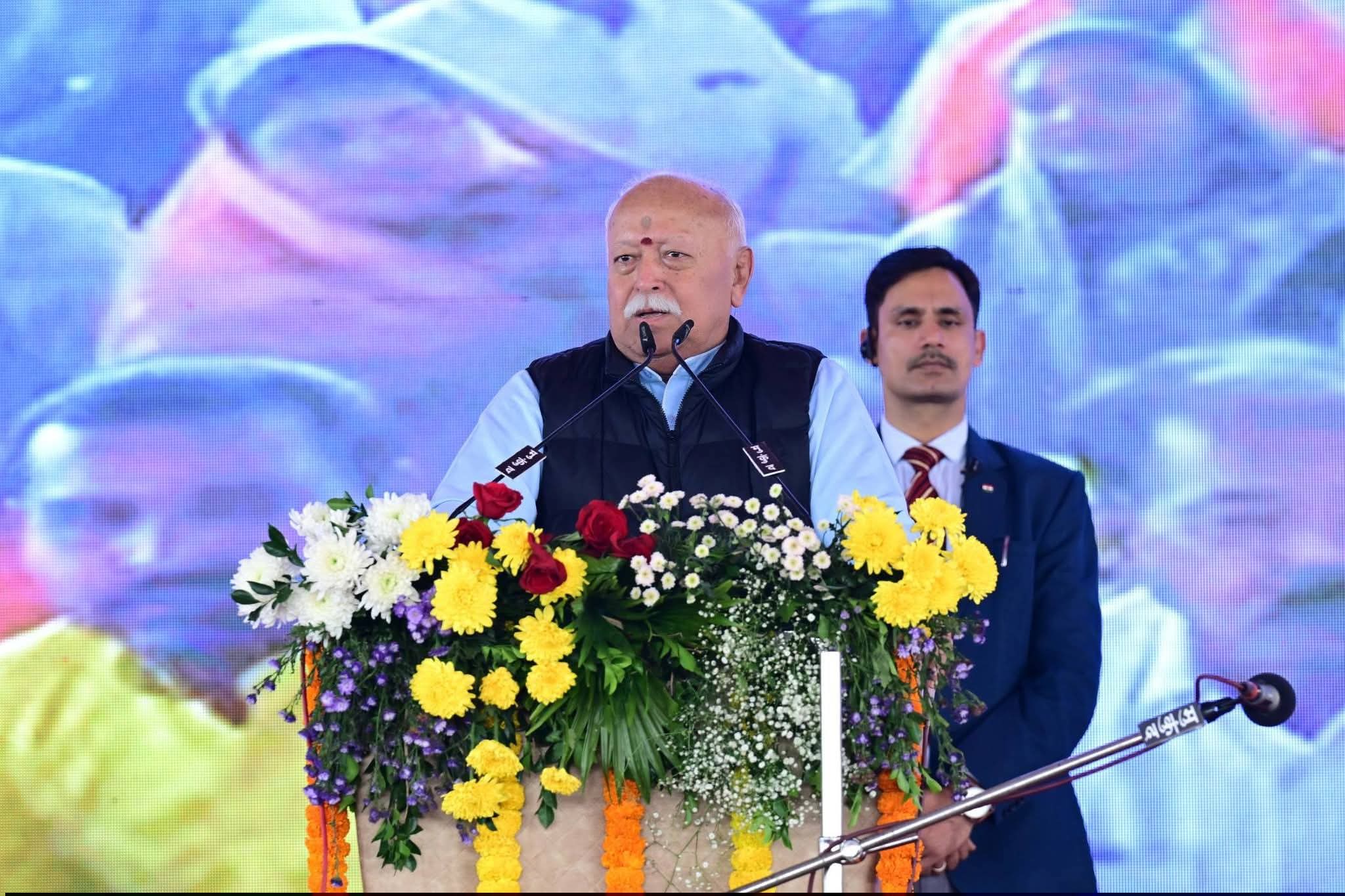 आरएसएस प्रमुख डॉ. मोहन भागवत ने कहा कि संघ की स्थापना को 100 साल पूरे हुए हैं, हम हिन्दू किसी भी क्षेत्र में विचार करें तो संकट नजर आता है। हमें संकट की चर्चा नहीं करनी है, संकट का उपाय हमारे पास ही है। हम ठीक रहें, तो कोई भी संकट हमें नहीं लील सकता है।’ संघ प्रमुख ने हिन्दू समाज को अपनी संस्कृति और परंपरा से जुड़ने का आह्वान करते हुए कहा कि `हमारी भाषा, भूषा, भजन, भवन, भ्रमण और भोजन- ये सब अपने होने चाहिए। जिसमें अपनी भाषा का प्रयोग, स्थानीय वेशभूषा, अपने देवी-देवताओं का स्मरण और स्थानीय खान-पान व स्थलों का भ्रमण शामिल है, ताकि देश की सांस्कृतिक जड़ों को मज़बूत किया जा सके और आत्मनिर्भरता व ‘स्व’ (अपनेपन) की भावना को बढ़ाया जा सके।’