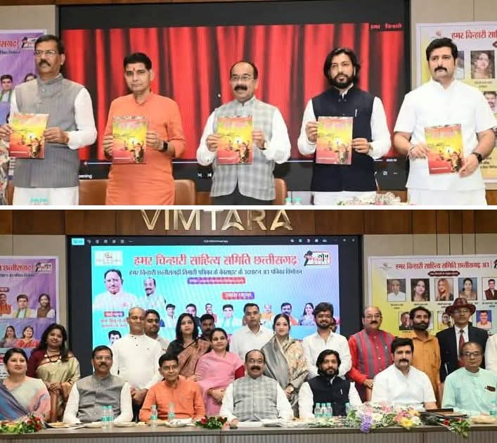 NNH रायपुर/ छत्तीसगढ़ के उप मुख्यमंत्री अरुण साव ने कहा है कि आज हम सब तीन करोड़ छत्तीसगढ़वासियों की यह महती जिम्मेदारी है कि हम छत्तीसगढ़ की संस्कृति, साहित्य और गौरव गाथा को देश-विदेश के हर कोने तक पहुँचाएँ। इसके लिए हम सबको जागने की जरूरत है। श्री साव रविवार को यहाँ हमर चिन्हारी साहित्य समिति और सोच विचार मीडिया के संयुक्त तत्वावधान में शांति नगर स्थित विमतारा भवन “हमर चिन्हारी छत्तीसगढ़ी तिमाही पत्रिका” वेबसाइट के उद्घाटन और पत्रिका का विमोचन समारोह को मुख्य अतिथि के रूप में सम्बोधित कर रहे थे।