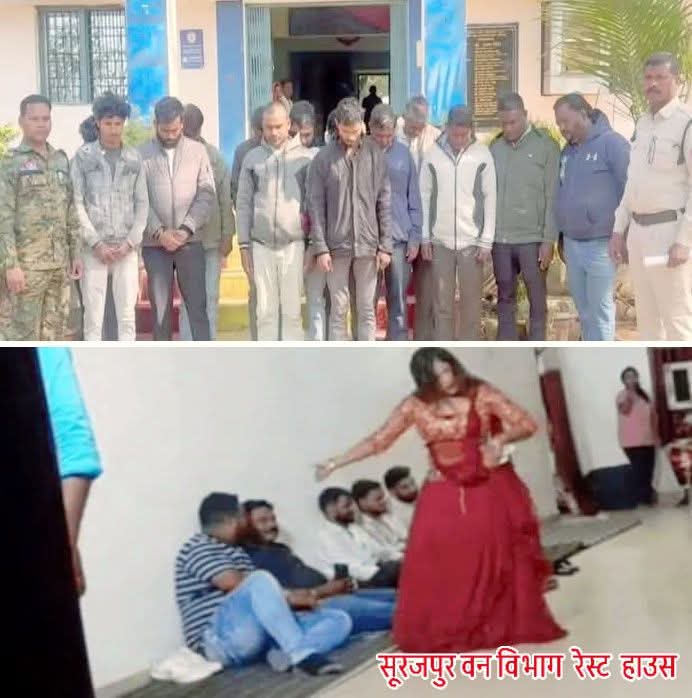 देवभोग अश्लील डांस मामले में 14 लोग गिरफ्तार, सूरजपुर के वन विभाग रेस्ट हाउस में भी अश्लील डांस का वीडियो हुआ वायरल, डिप्टी रेंजर निलबिंत