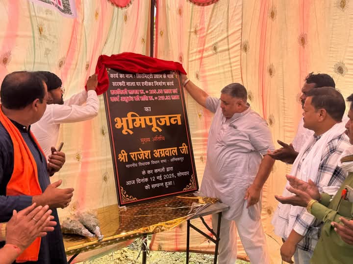 NNH सरगुजा/ अंबिकापुर विधानसभा क्षेत्र के उदयपुर विकासखंड के झिरमिट्टी उद्यान के पास खरफरी नाला में जल संसाधन क्रमांक 01 के द्वारा 285. 55 लाख के लागत राशि से निर्माण होने वाले एनीकट निर्माण कार्य का 12 मई 2025 दिन सोमवार को भूमि पूजन कार्यक्रम का आयोजन किया गया था जहां अतिथि के रूप में अंबिकापुर विधायक राजेश अग्रवाल शामिल हुए पुष्प गुच्छ देकर उनका स्वागत किया गया।स्थानीय जनप्रतिनिधियों की उपस्थिति में विधायक राजेश अग्रवाल ने एनीकट निर्माण कार्य का विधिवत भूमि पूजन किया। गौरतलब है कि उदयपुर क्षेत्र के लोगों के द्वारा झिरमिटी खरफरी नाला में एनीकट निर्माण को लेकर लंबे समय से मांग की जा रही थी।अंबिकापुर विधायक राजेश अग्रवाल के पहल से झिरमिट्टी उद्यान के पास खरफरी नाला में एनीकट निर्माण हेतु 285.55 लाख रुपए की स्वीकृति प्रदान हुई। एनीकट स्वीकृति मिलने उपरांत सोमवार को अंबिकापुर विधायक राजेश अग्रवाल ने स्थानीय जनप्रतिनिधियों के साथ निर्माण स्थल पर पहुंच एनीकट निर्माण कार्य का विधिवत भूमि पूजन किया है। खरीफरी नाला में एनीकट निर्माण कार्य होने से क्षेत्र के लोगों को उसका लाभ मिलेगा निर्माण कार्य को लेकर क्षेत्र के लोगों में हर्ष व्याप्त है। साथ ही विधायक राजेश अग्रवाल का आभार जताया। अंबिकापुर विधायक राजेश अग्रवाल के द्वारा लगातार अंबिकापुर विधानसभा क्षेत्र में विकास के कार्य किए जा रहे हैं। यही नहीं लगातार इनके द्वारा अंबिकापुर विधानसभा क्षेत्र का दौरा कर लोगों से मुलाकात करते हुए उनकी समस्याएं सुन निराकरण भी किया जा रहा है।