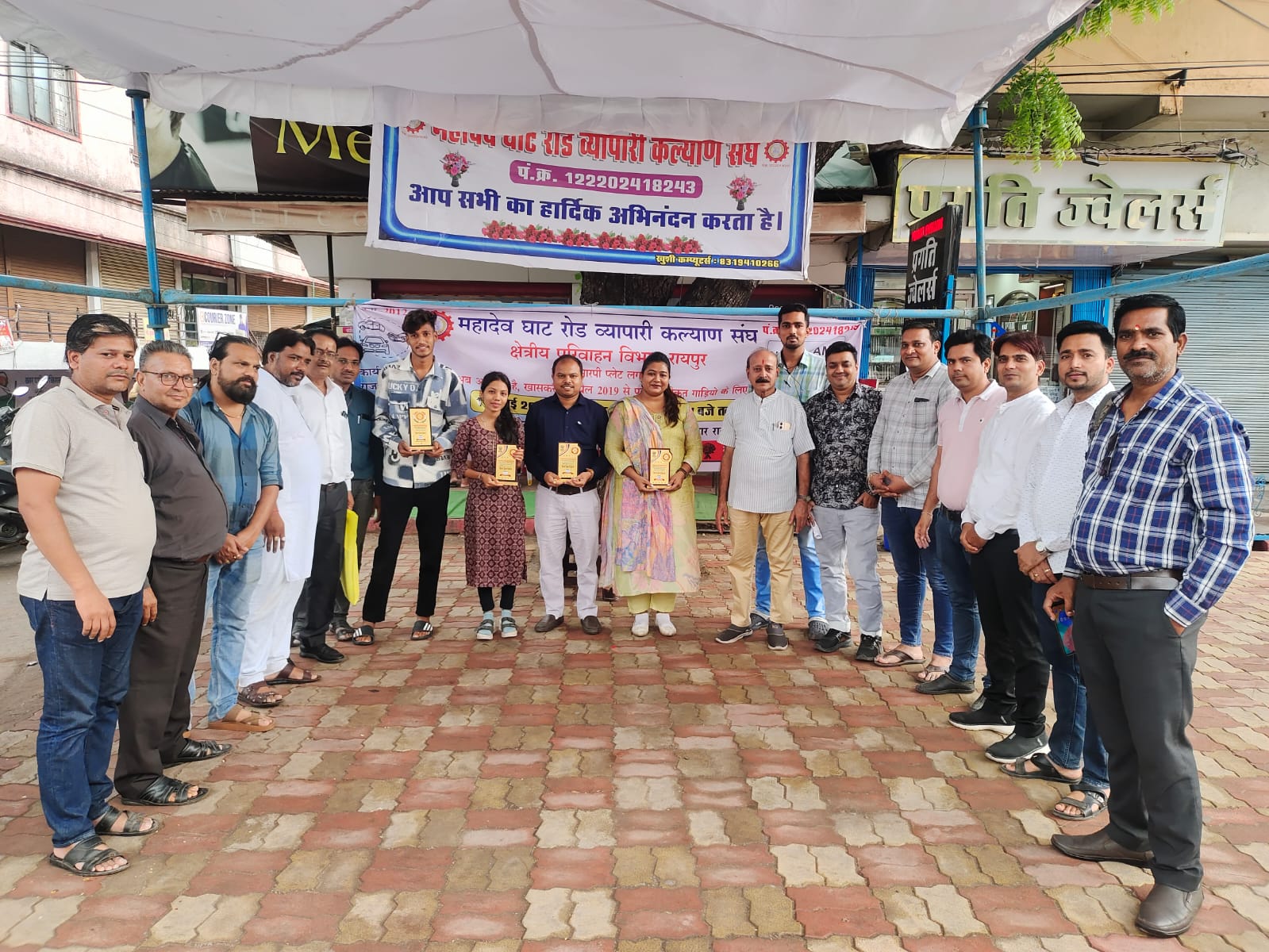NNH रायपुर/ महादेव घाट रोड व्यापारी कल्याण संघ एवं क्षेत्रीय परिवहन विभाग के सहयोग से हाई सिक्योरिटी नंबर प्लेट HSRP शिविर व्यापारियों एवं आम जनता की सुविधाओं के लिए ताकि आगे भविष्य में दिक्कत ना हो भीड़ से बचने के लिए महादेव घाट रोड व्यापारी कल्याण संघ के द्वारा शिविर प्रगति ज्वेलर्स सी वाटिका सोनी नगर रायपुर में लगाया गया था जिसमें काफी संख्या में आम जनता और व्यापारियों 147 वाहन चालकों ने उच्च मापदंड वाली नंबर प्लेट के लिए रजिस्ट्रेशन कराया कार्यक्रम के संयोजक राजकुमार अग्रवाल वैभव सालुंखे प्रभारी विजय कलंत्री विनोद जैन टिकेश्वर पटेल विवेक गर्ग ने पूर्ण सहयोग कार्यक्रम को सफल बनाने में मेहनत की आम जनता ने महादेव घाट रोड व्यापारी कल्याण संघ के इस कार्य को की सराहना करते हुए व्यापारी हित के कार्य अलावा जन सेवा के नेक कार्य करने के लिए बधाई दी। उपरोक्त कार्यक्रम के आयोजन में अध्यक्ष विमल बाफना राम चौरसिया विनोद जोशी टिकेश्वर पटेल वैभव सालुंखे विनोद जैन राजकुमार अग्रवाल विवेक गर्ग विश्वास अग्रवाल दिनेश दशोरे देवेंद्र पांडा टिंकू वाधवानी धीरज ताम्रकार, नरेश सुराणा मोहन पटेल रवि रावतानी तेजस सालुंखे ईश्वर सिंह, एवं परिवहन विभाग से आकृति बक्स श्रवण सिंह पायल योगेश का विशेष सहयोग व्यापारी सर को प्राप्त हुआ यह प्रेस विज्ञप्ति व्यापारी संघ के अध्यक्ष विमल बाफना ने जारी किया।
