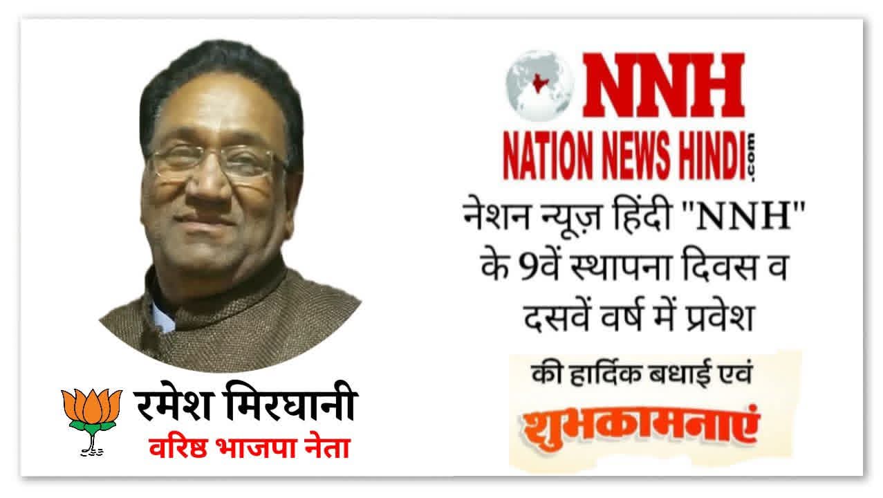 NNH रायपुर/ वरिष्ठ भाजपा नेता व समाज सेवक रमेश मिरघानी ने डिजिटल मीडिया प्लेटफॉर्म NNH नेशन न्यूज़ हिंदी के 9 वें स्थापना दिवस की बधाई देते हुए कहा है कि, NNH के द्वारा राजनीति, समाज, व्यापारिक, औद्योगिक व अन्य समसामयिक विषयों पर आधारित समाचार प्रकाशित करते आया है। नेशन न्यूज़ हिंदी NNH की उत्तरोत्तर प्रगति के लिए मेरी ओर से अंनत शुभकामनाएं।