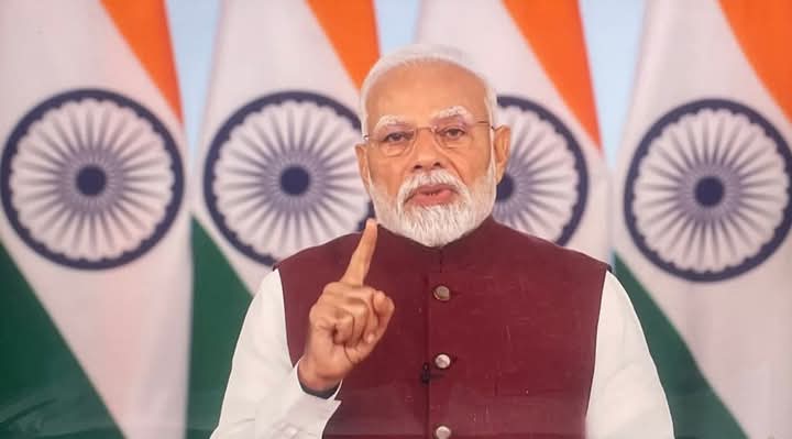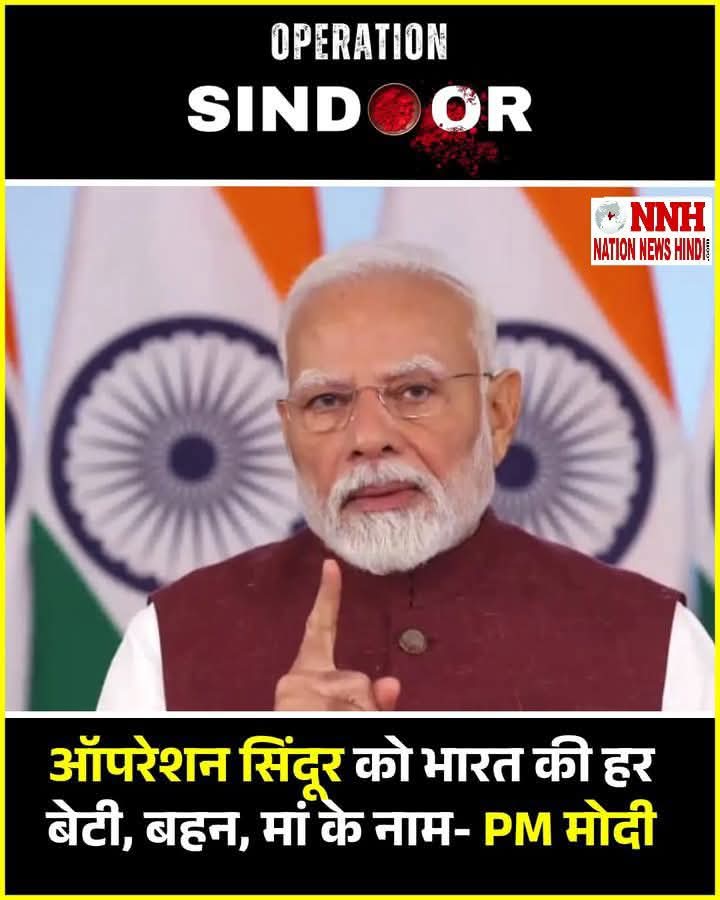 प्रधानमंत्री नरेंद्र मोदी सोमवार शाम 8 बजे देश को संबोधित किया। इस दौरान उन्होंने कहा कि “मैं सबसे पहले भारत की पराक्रमी सेनाओं को, सशस्त्र बलों को, खुफिया एजेंसियों को हर भारतवासी की तरफ से सैल्यूट करता हूं. हमारे वीर सैनिकों ने ऑपरेशन सिंदूर के टारगेट को पूरा करने लिए असीम शौर्य का प्रदर्शन किया है। मैं उनके साहस और पराक्रम को आज समर्पित करता हूं, देश की हर माता को, देश की हर बहन को, देश की बेटी को यह पराक्रम समर्पित करता हूं। हमने आतंकवादियों को मिट्टी में मिला देने के लिए भारत की सेनाओं को पूरी छूट दे दी। आज हर आतंकी, आतंक का हर संगठन जान चुका है कि हमारे बेटी बहनों के माथे से सिंदूर हटाने का अंजाम क्या होता है।”