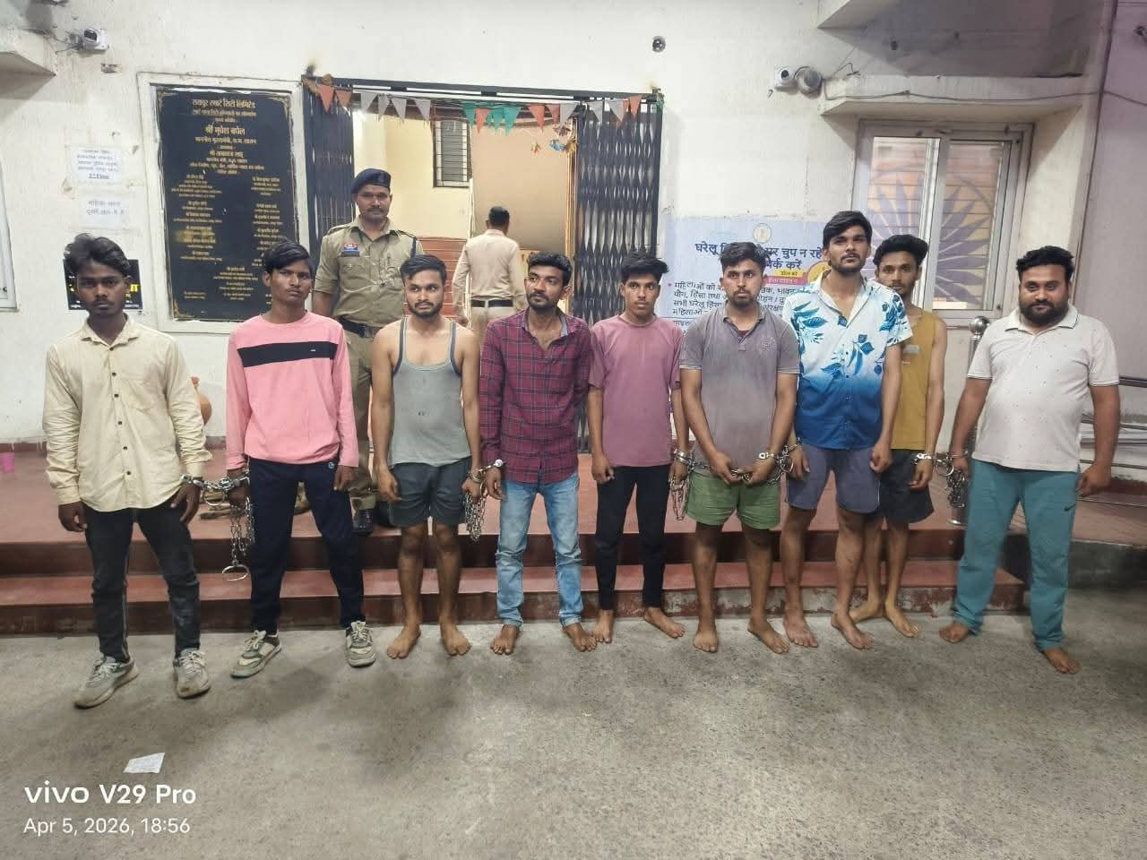 सभी 9 व्यक्तियों के विरुद्ध भारतीय नागरिक सुरक्षा संहिता की धारा 170/126, 135(3) के तहत प्रतिबंधात्मक कार्यवाही करते हुए विशेष कार्यपालिक मजिस्ट्रेट कोतवाली के न्यायालय से वारंट प्राप्त कर केन्द्रीय जेल भेजा गया।