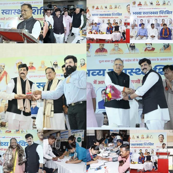 अमित चिमनानी के संयोजन में आयोजित मेगा मेडिकल कैंप में पहुंचे मुख्यमंत्री विष्णु देव साय, विधानसभा अध्यक्ष डॉक्टर रमन सिंह, भाजपा संगठन महामंत्री पवन साय, वन एवं सहकारिता मंत्री केदार कश्यप, स्वास्थ्य मंत्री श्याम बिहारी जायसवाल, राजस्व एवं खेल मंत्री टंकराम वर्मा महापौर रामू रोहरा, विधायक सुनील सोनी, गुरु खुशवंत, सहयोगी संस्था छत्तीसगढ़ सिंधी पंचायत के अध्यक्ष महेश दरयानी व हजारों की संख्या में लोगों ने लिया मेगा स्वास्थ्य शिविर में लाभ